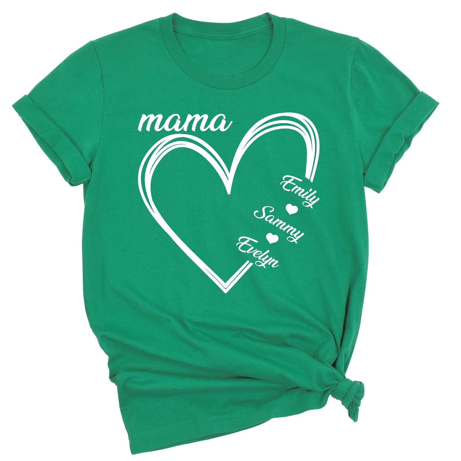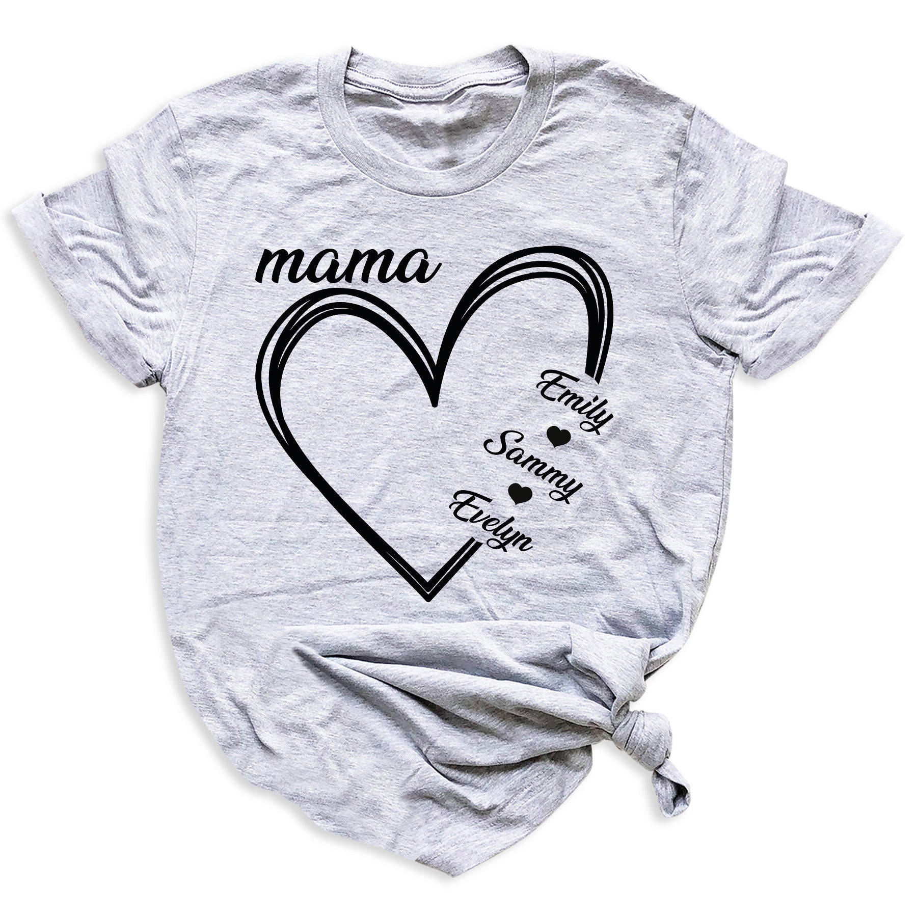 Our Custom Mama Shirt with Kids’ Names features a beautiful heart design personalized with children’s or grandchildren’s names, making it a perfect everyday reminder of love.