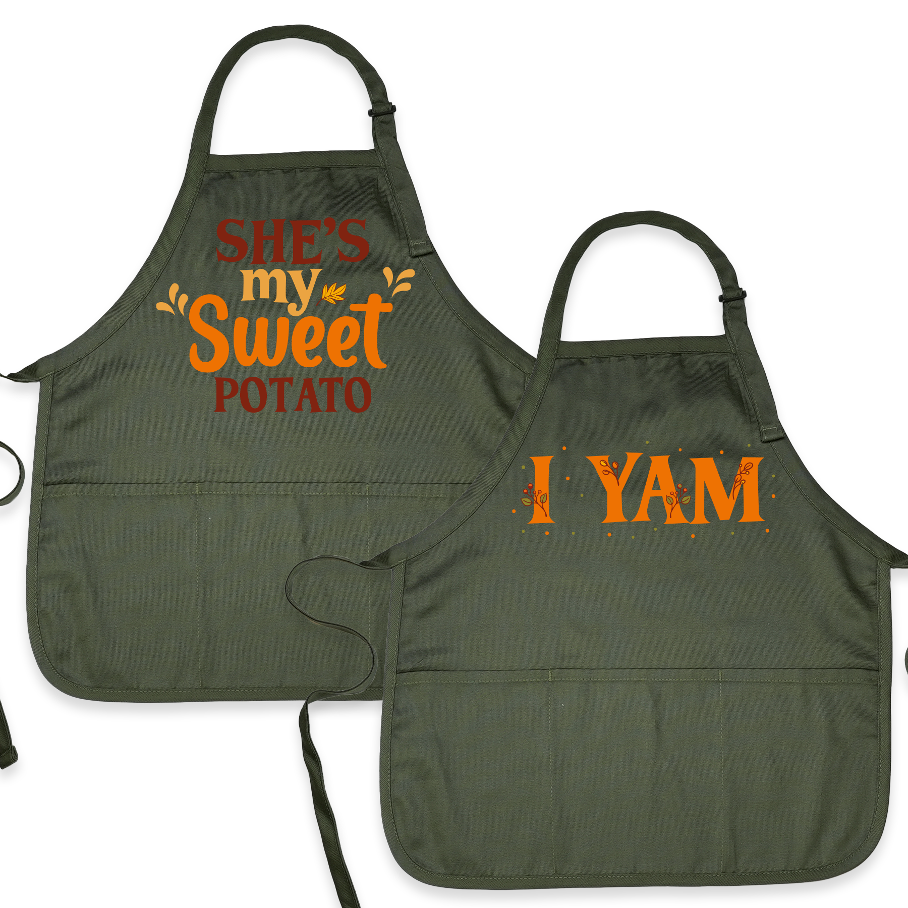Celebrate love, laughter, and fall flavors with our “She’s My Sweet Potato” & “I Yam” Couple Aprons! Perfect for Thanksgiving dinners, Halloween parties, or cozy Christmas baking, these matching aprons make cooking together even more fun.