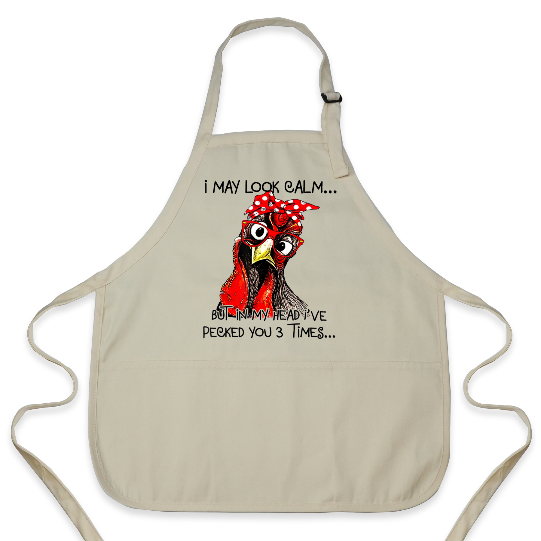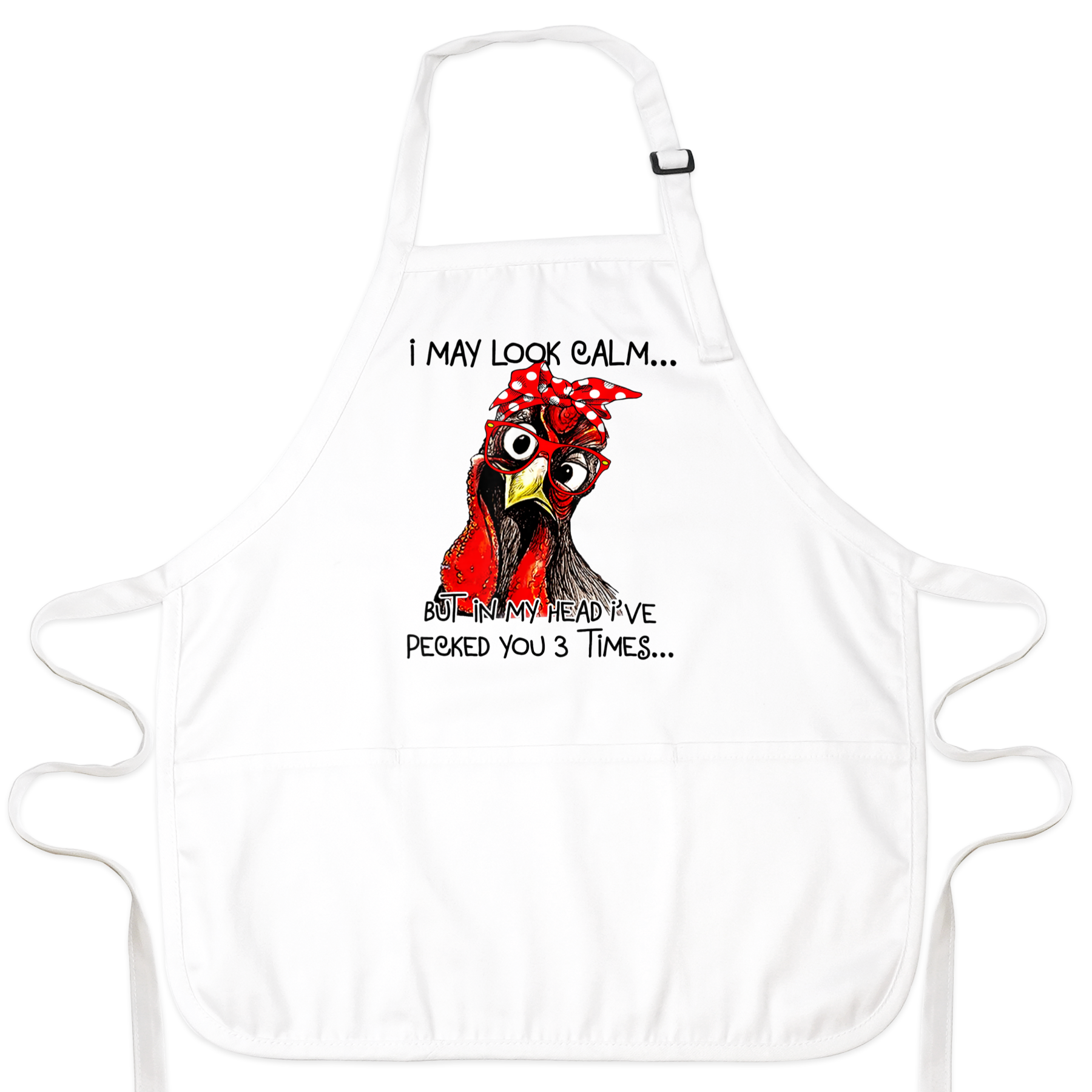 Perfect for chicken moms, backyard farmers, or anyone who loves a good laugh while cooking. Featuring a sassy chicken graphic with the quote “I may look calm… but in my head I’ve pecked you 3 times,” this apron adds charm and fun to your kitchen adventures.