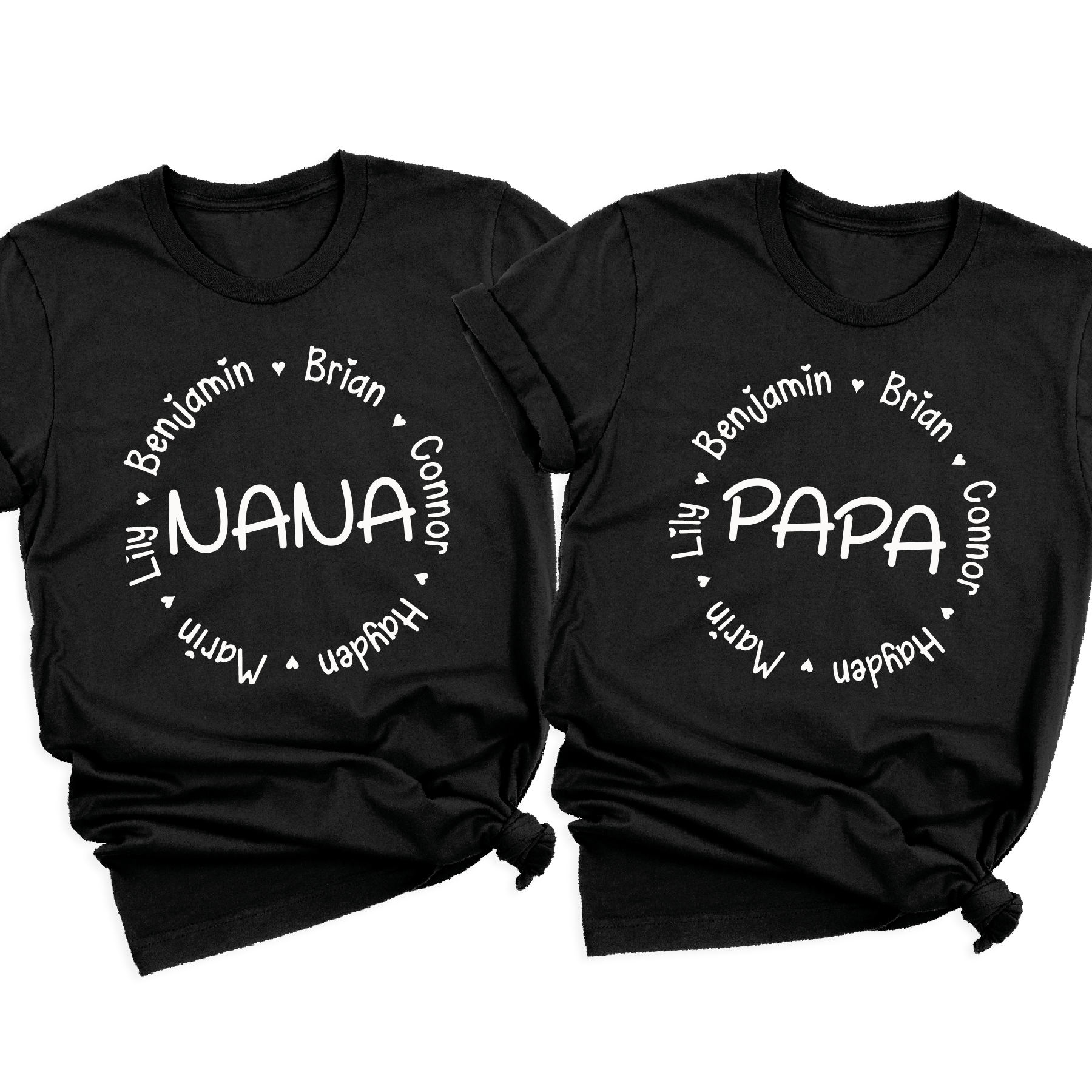 Celebrate the love of grandparents with this Custom Nana & Papa T-Shirt, personalized with kids’ names in a beautiful circular design. This heartfelt shirt makes a perfect Mother’s Day, Father’s Day, Grandparents Day, birthday, or Christmas gift for Nana, Papa, Grandma, Grandpa, Mimi, or Gigi.